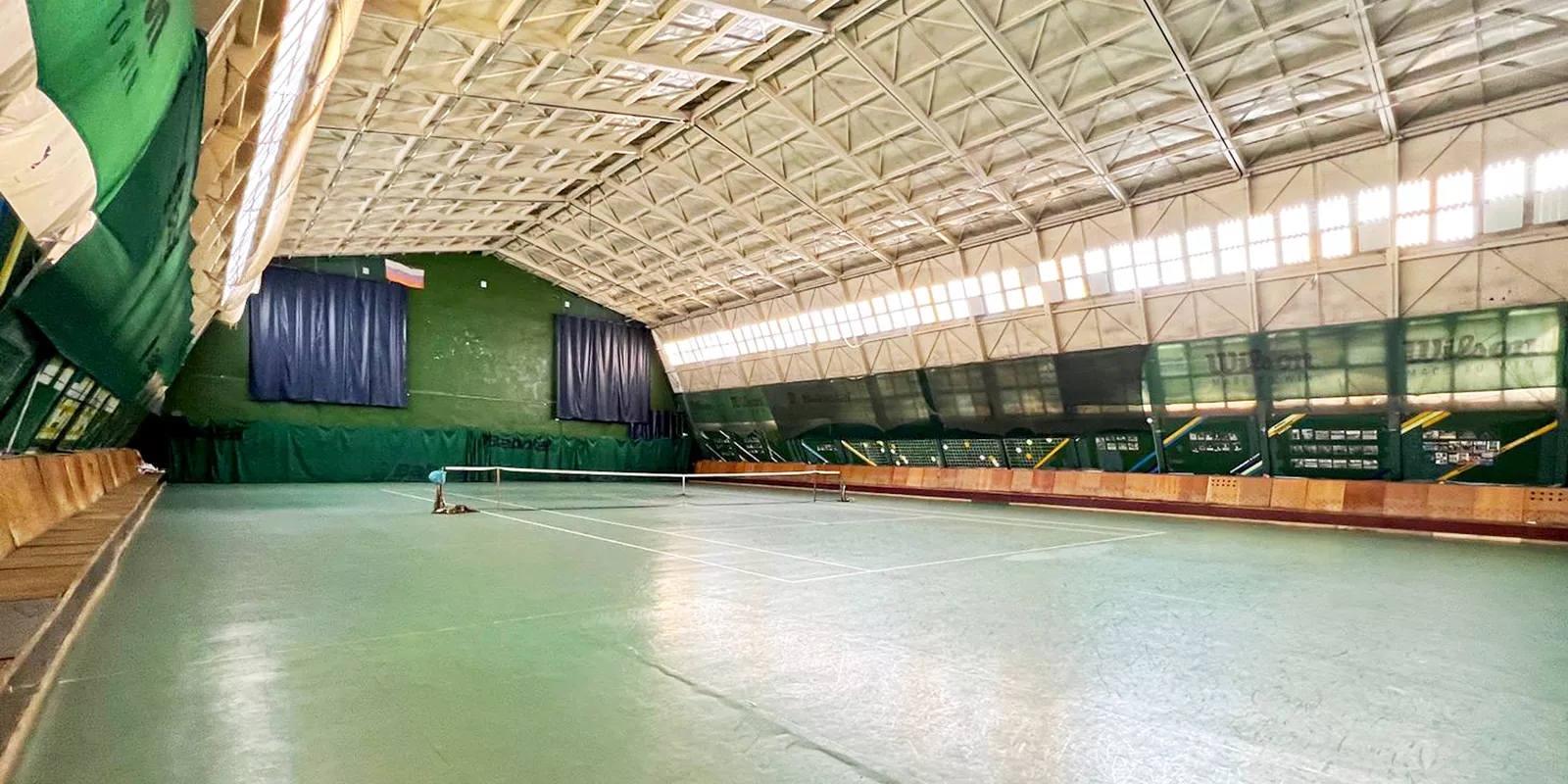 В здании есть четыре спортивных зала площадью от 40 до 950 квадратных метров, комнаты отдыха, раздевалки, уборные, душевые комнаты и сауна.