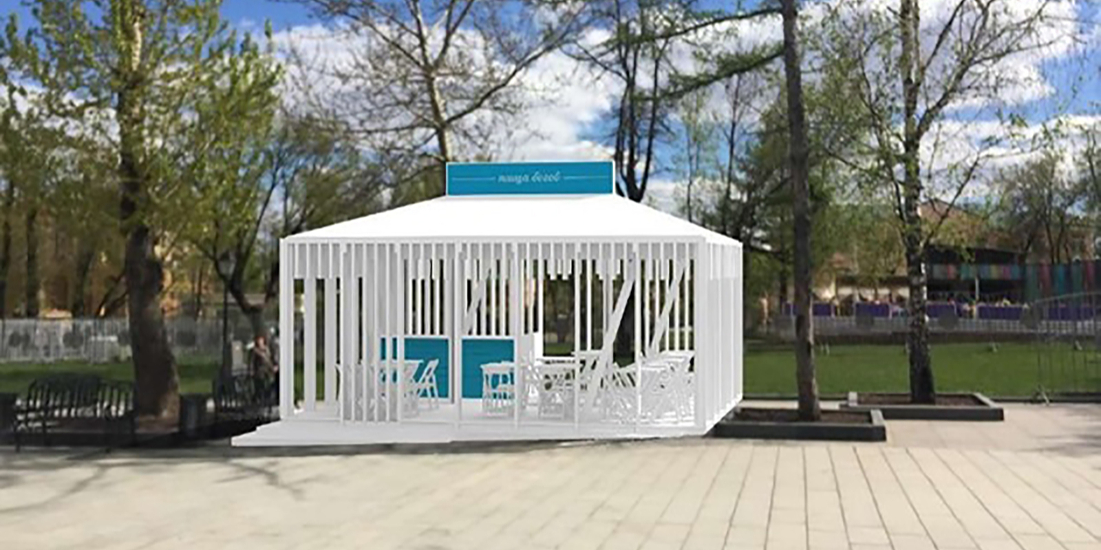 Самый просторный павильон площадью 49 квадратных метров — это сезонная площадка со структурным остеклением и декоративными рейками для зонирования помещений. Внутри можно установить барную стойку, а общий зал площадью 40 квадратных метров вмещает до 25 посетителей. Согласно условиям договора заведение будет работать в период с 1 мая по 1 октября.